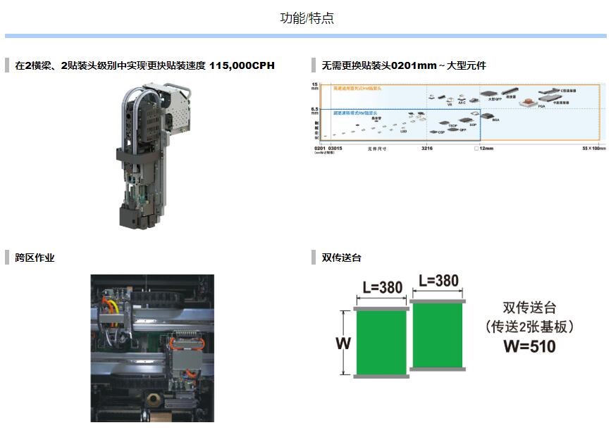 極 限改進“單一貼裝頭解決方案”,具有卓絕生產(chǎn)率和通用性的萬 能型貼片機