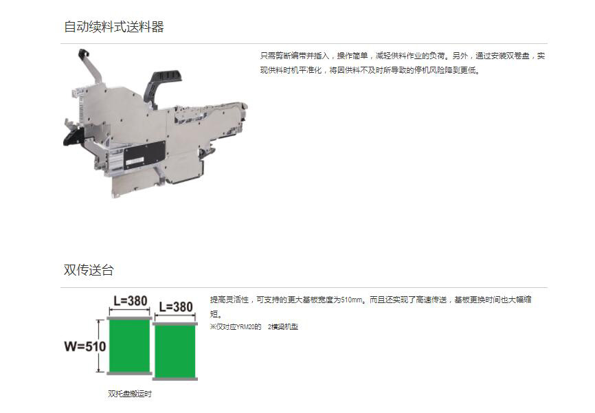 YRM20高效模塊貼片機 極 限改進“單一貼裝頭解決方案”,具有卓絕生產(chǎn)率和通用性的萬 能型貼片機1.融合Σ系列產(chǎn)品的技術(shù),實現(xiàn)卓絕的生產(chǎn)率.2.采用“單一貼裝頭解決方案”,廣泛對應(yīng)各種生產(chǎn).3.標(biāo)準(zhǔn)配備可維持高品質(zhì)貼裝的各項功能.4.通過運用豐富的功能群,實現(xiàn)高效生產(chǎn).