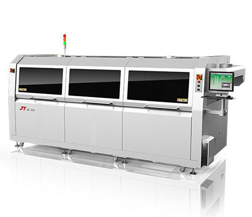 外形流線型設(shè)計,內(nèi)部模塊化設(shè)計,適合SMT及直插元件的無鉛焊接。 噴霧系統(tǒng)采用離心風(fēng)機上抽風(fēng),防止助焊劑滴到PCB上。 助焊劑緩沖罐感應(yīng)器外置,更加可靠耐用。 標(biāo)配冷風(fēng)刀,防止助焊劑霧氣向外擴散,減少污染。 雙波控制采用無極變頻技術(shù),可獨立控制波峰高度。 1/4HP大功率波峰馬達,更大波峰高度可達15mm。 具有超溫聲光…