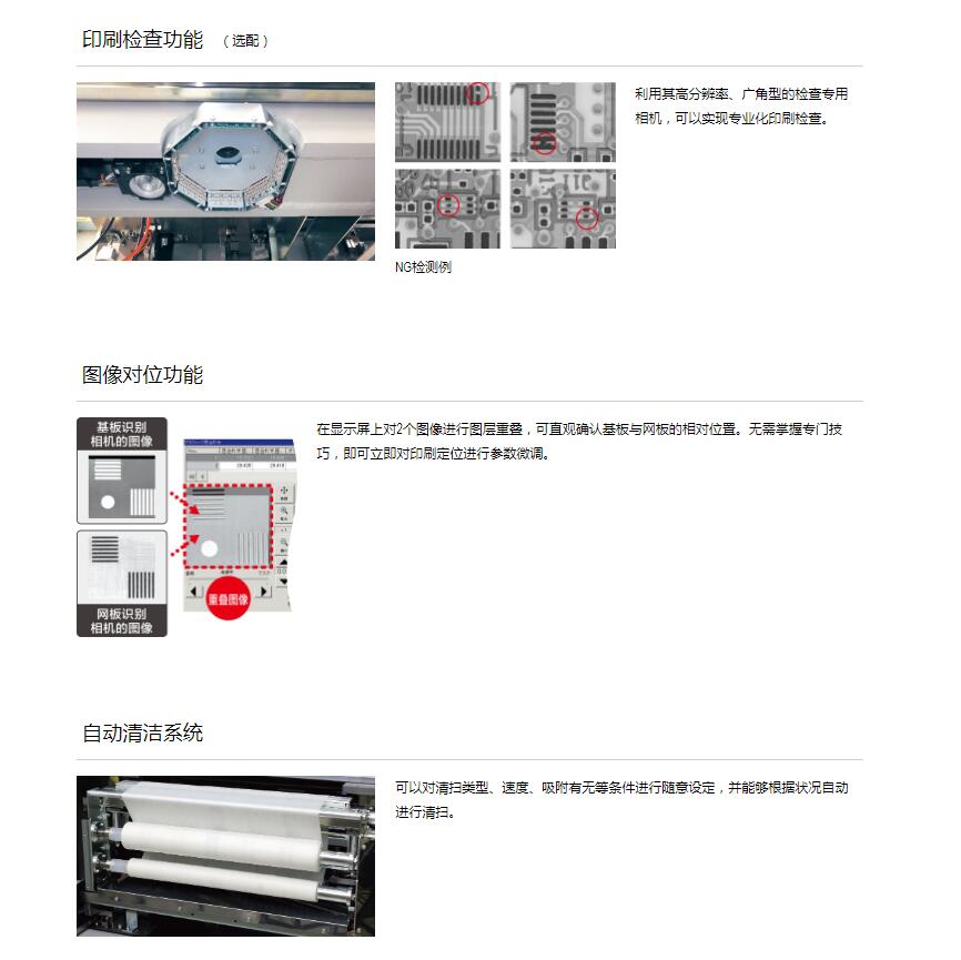 1.實(shí)現(xiàn)等同于上級機(jī)型的印刷質(zhì)量, 支持大型基板, 寬幅網(wǎng)板。
