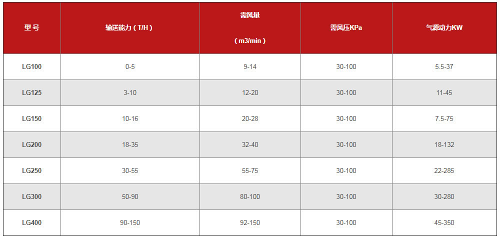鼎龍電力氣力輸送設備參數(shù):