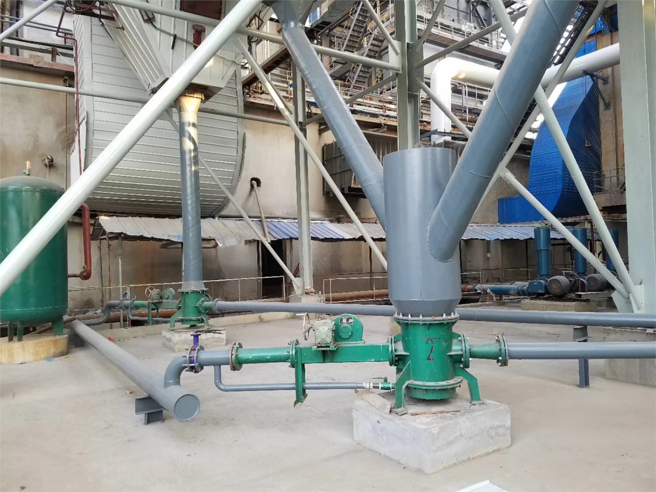 氣力輸送氣力輸送設(shè)備設(shè)備組成的低壓氣力連續(xù)輸送系統(tǒng),具有其它任何氣力輸送設(shè)備組成的輸送系統(tǒng)無法達(dá)到的可靠性。這是由于:低壓連續(xù)輸送系統(tǒng)一般采用羅茨風(fēng)機(jī)(也可視情況采用高壓離心風(fēng)機(jī)或空壓機(jī)),羅茨風(fēng)機(jī)的高可靠性決定了系統(tǒng)的可靠性。設(shè)備本體簡單,無常規(guī)氣力輸送工藝中閥門的頻繁動作,設(shè)備故障率大大降低。由低壓氣力輸送設(shè)備氣力輸送設(shè)備組成氣力輸送系統(tǒng),一般設(shè)備數(shù)量和種類都較少,使得整個系統(tǒng)簡潔可靠。連續(xù)輸送壓力平穩(wěn),無任何沖擊荷載。